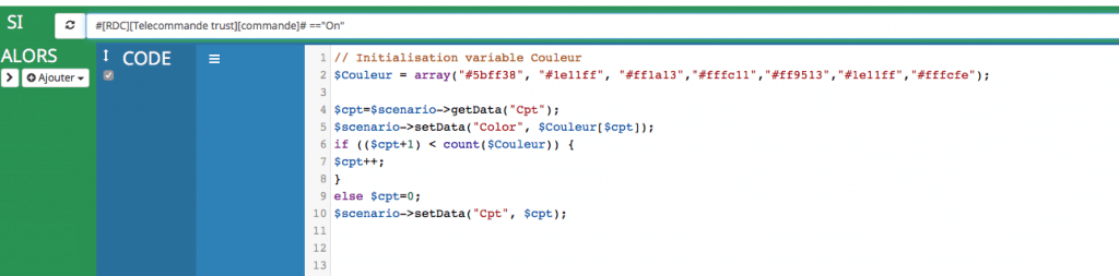 Pour cela on va passer par l’instruction Code , dans les scénario Jeedom.