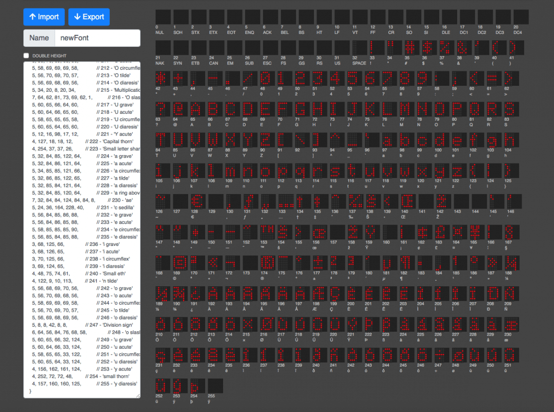 Par exemple le code 38 qui correspond au & ( Et commercial ou Esperluette ) , il suffit avec l’éditeur de dessiner la forme que l’on veut à la place , on récupère son codage ( 5, 54, 73, 86, 32, 80, // 38 – ‘&’ exemple pour l’esperluette ) et on le colle à la place e l’ancienne définition dans le fichier des définitions des polices.
