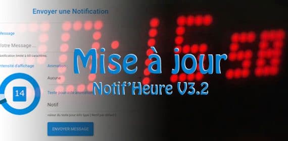 Pour la fin de l’année , la version 3.2 du Notif’heure , qui vient avec son lot de nouveautés. Gestions des effets Historisation des messages tag « important » Amélioration du Scan réseau pour détecter les autres notif’heures sur le réseau Ajout d’options supplémentaires pour les actions / boutons Ajustement automatique des […]