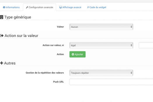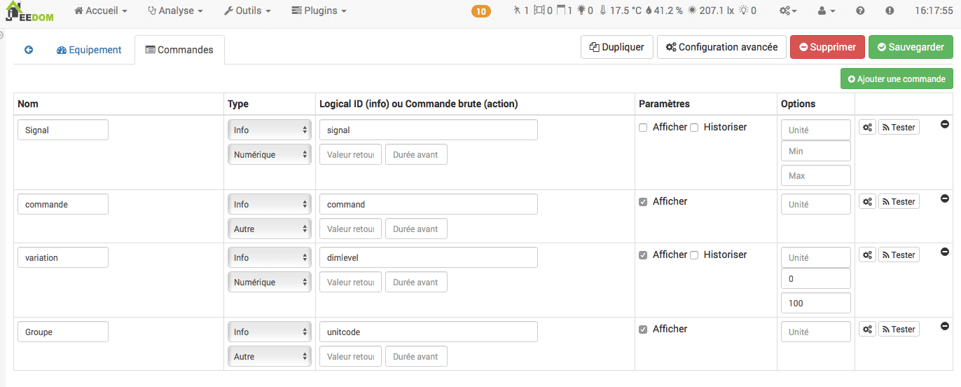 L’intégration dans jeedom , est très simple avec le module RFXcom , il suffit de le mettre en mode inclusion , d’appuyer sur la touche I ou O puis un nouvel équipement est ajouté .