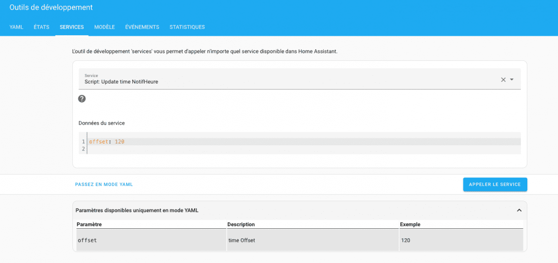 icon: mdi:clock-digitalPour tester le script , se rendre dans le menu « Outils de développement ». « services » et chercher le script nouvellement créé.