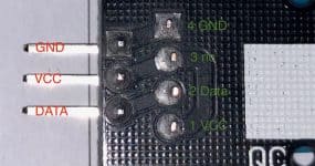 - Data : A brancher sur une entrée logique , sur mon Wemos D1 , je l’ai branché à la prise D2 , qui correspond en notation GPIO à la broche 16