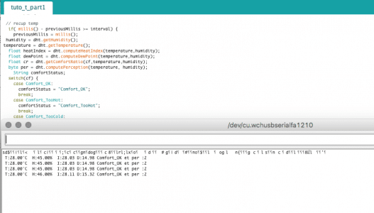 Dans un premier temps , je vais me contenter de lire les valeurs du DHT , et les afficher dans la console.